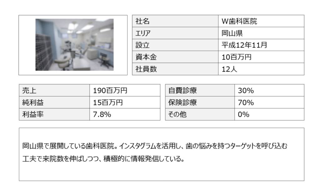 W歯科医院は岡山県に展開する歯科医院だ。 知名度が低い事に起因して集客数が伸び悩んでいたのだが、インスタグラムを活用する上で行ったとある施策によって集客数を大きく伸ばした。 今回はその施策について説明していく。