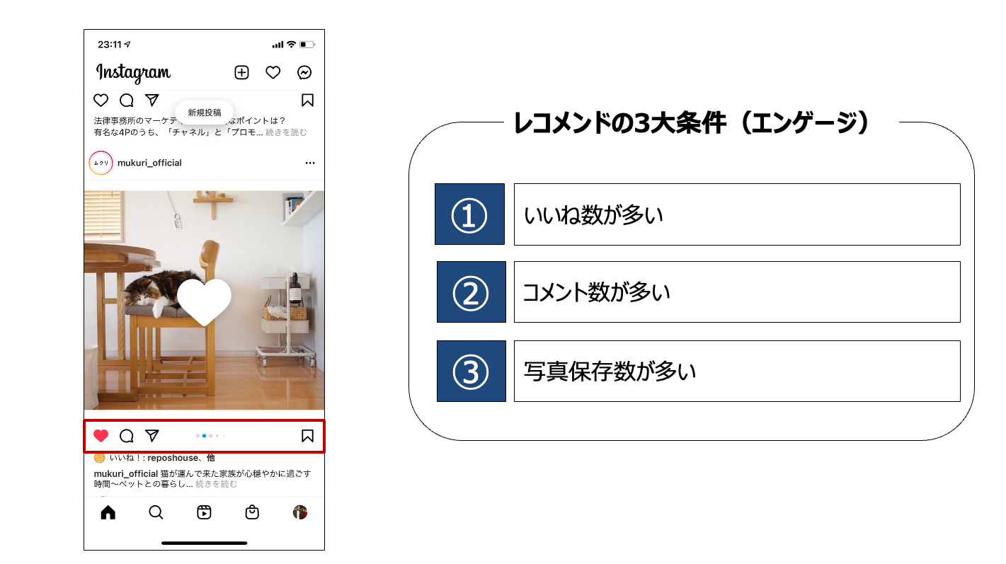 この数自体がエンゲージメント率となる。例えば、下の図にあるように、インスタグラムでのエンゲージメントは、いいね数、コメント数、写真保存数などである。これらの数字が多ければバズり、来院につながるという考え方である。