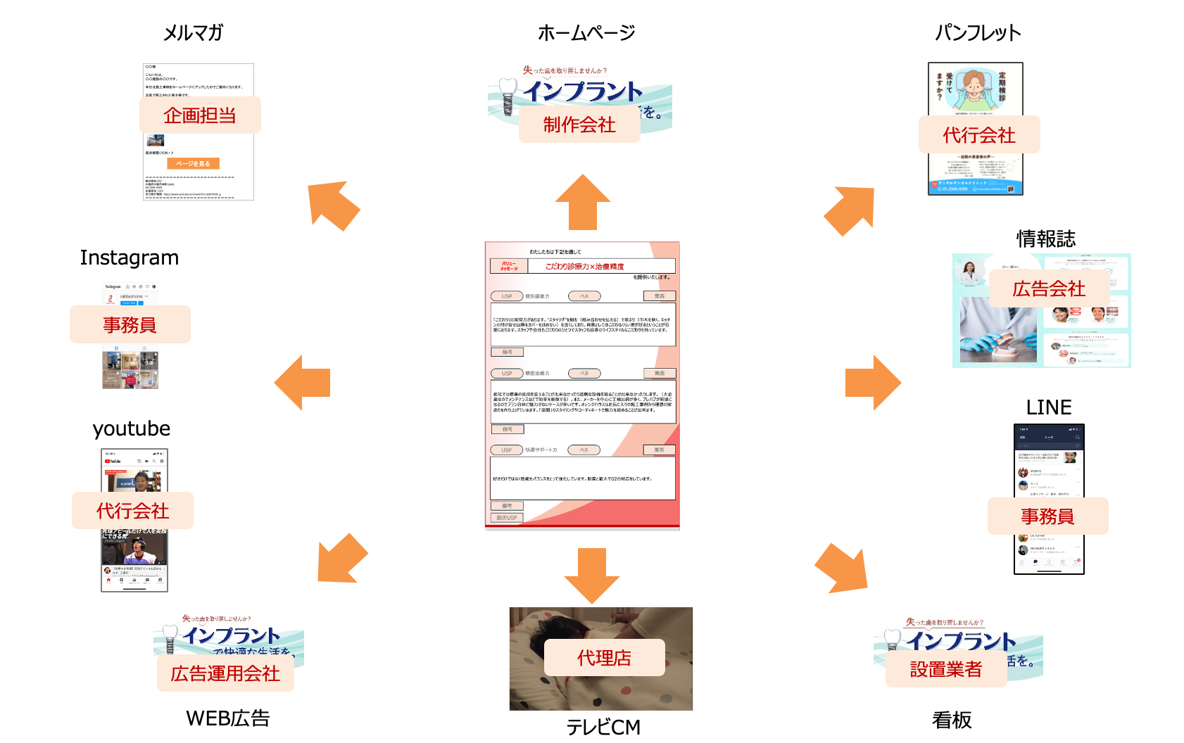 例えば、ホームページやインスタグラム、YouTube、パンフレットなどである。わかりやすい事例で言えば、自分が知っている医院のホームページを開いてみてほしい。その医院のUSP、つまり強みが分かるだろうか。