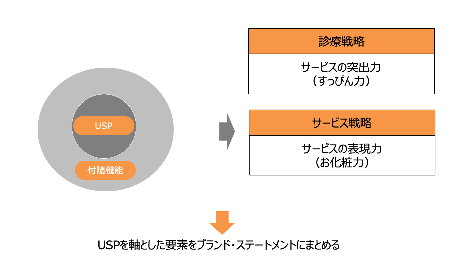 多くのケースで「できない」と回答するのではなかろうか。そのような場合は、USPを改めて「リパッケージ」する時期に来ているのである。また、逆に自院はハード・ソフト・ブランドで優位性がない、と悩まれているケースも多いかもしれない。