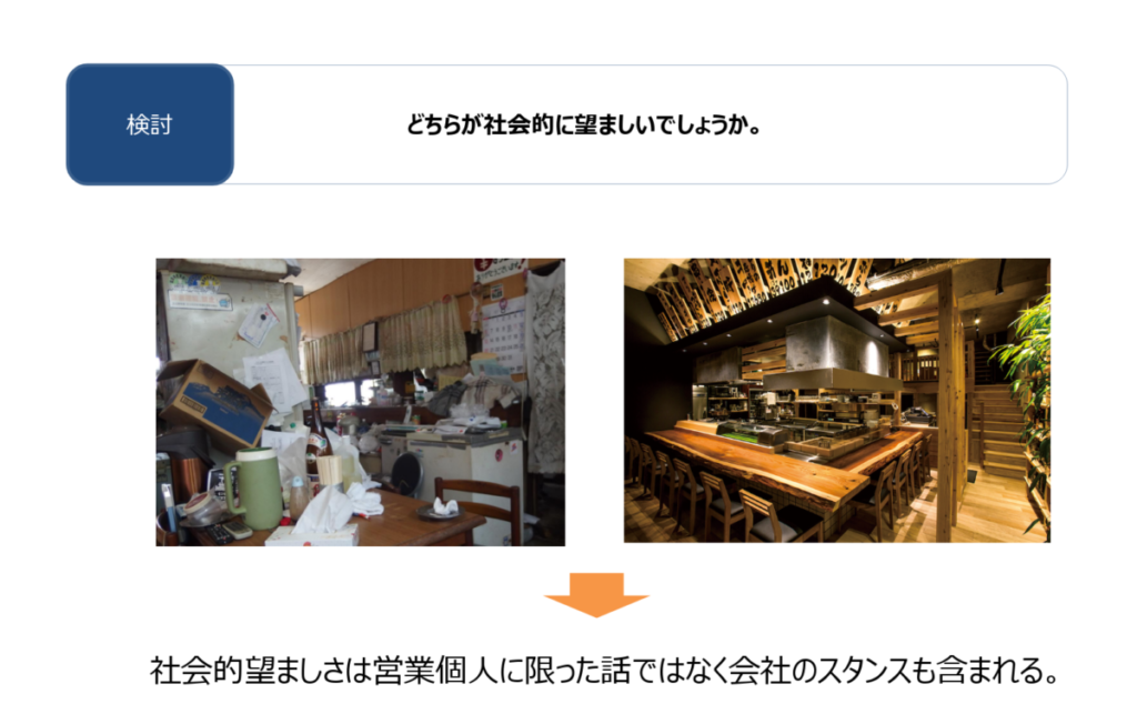 当然ながら、綺麗に整っている場所の方が空間としての社会的望ましさを得られるのです。メラビアンの法則という言葉がありますが、まさに視覚情報の50パーセント以上が、この社会的望ましさと深く関係しているのです。